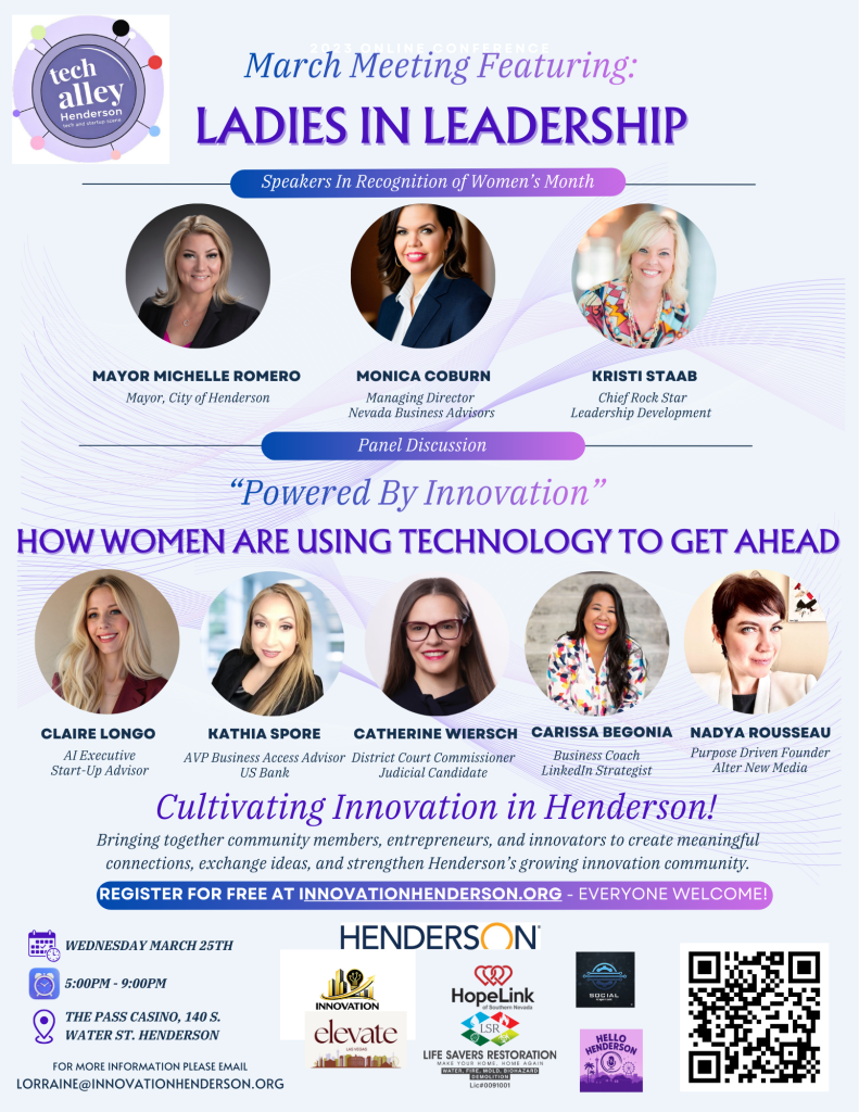 Tech Alley Henderson’s March meeting took the form of a Ladies in Leadership event, running from 5:00 PM to 9:00 PM, and every detail of the evening reflected a city that is serious about its future.